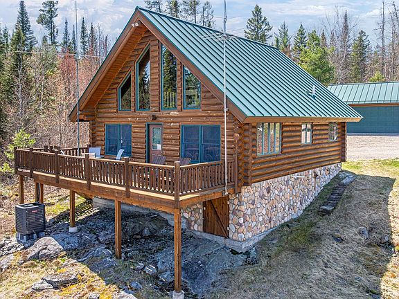 Located approx. 20 miles east of Ely near the end of Fernberg Rd, Lake One, Snowbank Lake, and the BWCAW is this awesome log home on 10 acres with phenomenal long distance views of the surrounding wilderness. Your elevated panoramic views from the home look into the Boundary Waters... including seeing Disappointment Mountain located deep in the BWCAW about 8 miles away!! The property directly adjoins millions of acres of Superior National Forest lands right to the BWCAW border a mile away! What a great place to live or have a year around getaway retreat! This 2 bedroom, 1 bath home is built with 10 inch logs from Voyageur Log Homes and has the main bedroom, kitchen, dining area, living room, and bathroom with laundry, all on the main floor... and upstairs is the second bedroom and a loft/office. Both levels, and large main floor deck have breathtaking views! There is also a 2.5 stall garage that is insulated and heated. A large maintenance free 36 x 28 Morton building provides great storage! Home is set up for complete piece of mind with a dual fuel heating system that includes 2 stage heat pump, plenum heater, and 96% efficient LP furnace. The heat pump also provides central air conditioning. Backup heat in case of a power outage provided by a Jotul LP heating stove that is controlled by its own thermostat. The entire heating system and Jotul stove were installed in 2021. A transfer switch allows for a generator to be connected to the home and both out buildings. There are lots of high-end upgrades here including heavy duty Vertex standing seam metal roofing on all buildings that have NO exposed fasteners and are at least 3 times the cost of standard metal roofing. Very nice insulated crawl space under the home is built right on the ledgerock! Located in a very private location on a 1.5 mile gravel road (Lookout Rd) that is maintained most of the way by the county, and the last few hundred feet (CCC Camp Rd) by the owner. Live and/or recreate here with the awesome views... and where the eagles are regularly soaring right over your deck!!