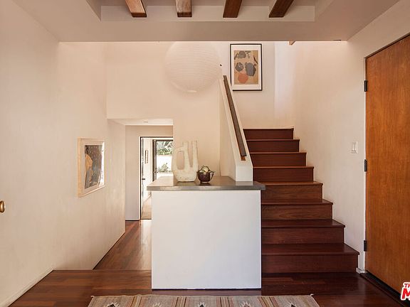 Set high in legendary Beachwood Canyon with absolutely breathtaking views, this Bauhaus Mediterranean, 4-bedroom, 3.5-bath residence is a true original. An effortless fusion of classic and contemporary design, it features one-foot-thick walls, steel-framed casement windows, and a sculptural interplay of mass and light. The result feels both grounded and ethereal-anchored in its hillside setting yet open to sweeping vistas beyond.Inside, sunlight pours through tall, multi-pane steel sash windows, illuminating hardwood floors, exposed beams, and softly curved walls. The living room centers on a fireplace, flowing into a formal dining area that opens to a chef's kitchen with soaring ceilings plus stainless-steel appliances. Throughout, handcrafted Moroccan-tiled baths and custom details bring a sense of artistry and texture.A one-of-one creation, the home was conceived by a fine arts painter and original designer whose work still graces the walls. The result is a living piece of art-expressive, soulful, and unmistakably individual. From nearly every room, views stretch past the glittering lights of downtown and the greenery of Griffith Park to the serene hillsides of Beachwood Canyon.Private and secluded yet open and light-filled, the home captures the duality that defines Los Angeles itself: artful, grounded, and effortlessly original. Just moments from Beachwood Village cafe's and Lake Hollywood's hidden trails and minutes from the heart of Hollywood and its studios-this residence stands as one of the canyon's most distinctive and inspired homes.