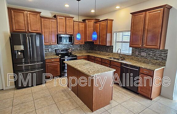 Welcome to this beautiful single-family home featuring 5 spacious bedrooms, 3 well-appointed bathrooms, and a 3-car garage with a long, ample driveway. The large kitchen is a chef's dream, complete with granite countertops and modern appliances, perfect for preparing meals and entertaining. The open-concept dining and living areas offer plenty of space for relaxation and gatherings. The master suite is generously sized and filled with natural light. The master bathroom boasts dual sinks, a relaxing bathtub, a spacious glass-enclosed shower, and a walk-in closet for added convenience. Step outside to the heart of this homethe screened-in patio and fenced-in backyard featuring a stunning pool with a heater and smart features, waterfalls and lights, ideal for family gatherings and celebrations. Lawn care and pool service are included. Small pets allowed. Come see this incredible home today and make it yours! Pet Details: Small pets