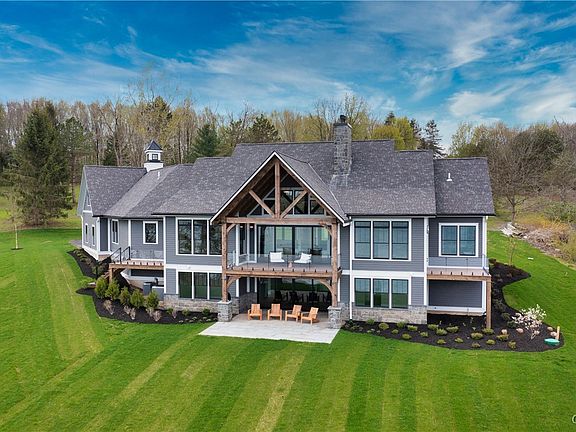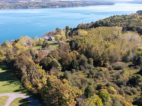 A stunning luxury lake house, custom-built just two miles from the village center, sits on 26.7 acres with 389 feet of exclusive private Skaneateles waterfront. This magnificent home features 5 bedrooms, 5 full baths, and 2 half baths. Upon entering, the grand vaulted ceilings immediately capture your attention, offering breathtaking views of the lake. The open floor plan effortlessly connects each room, showcasing water views, exquisite moldings and hardwood floors throughout. The first floor includes a private office with a built-in coffee station, a formal dining room, and a family room with a striking gas fireplace. Sliding doors lead to an expansive deck with glass railings that illuminate at night, creating a magical ambiance. The chef's kitchen is a culinary masterpiece, with custom cabinets, built-in refrigerator and freezer, a spacious island with marble countertops, and a commercial-grade stove with a custom wood hood vent. A butler's pantry with a second dishwasher and beverage drawers adds convenience for entertaining. The primary bedroom on the first floor features a private deck, a custom California walk-in closet, and a luxurious primary bath with double vanity, soaking tub, heated tile floors, a water closet, heated floors and glass surround shower. Another bedroom on the first level has its own en-suite bath. The second level includes a bedroom, loft area, and a full bath. The lower finished walkout level boasts a second family room with a stone fireplace, sliders to an oversized patio, a custom-made bar with glass backsplash and black walnut countertops, and an ice maker. Two additional bedrooms, two full baths, and a second laundry area complete this level. Outside, a two-level boathouse sits on 389 feet of waterfront, featuring a kitchen with a refrigerator, icemaker, and microwave. The main level offers a beautiful gathering area and a half bath. This brand new custom-built home by S & R Custom Homes is a luxurious private retreat that embodies the best in lakeside living. With its flawless design, top-of-the-line amenities, breathtaking views, and ultimate privacy, this home is truly a masterpiece and a once-in-a-lifetime opportunity.