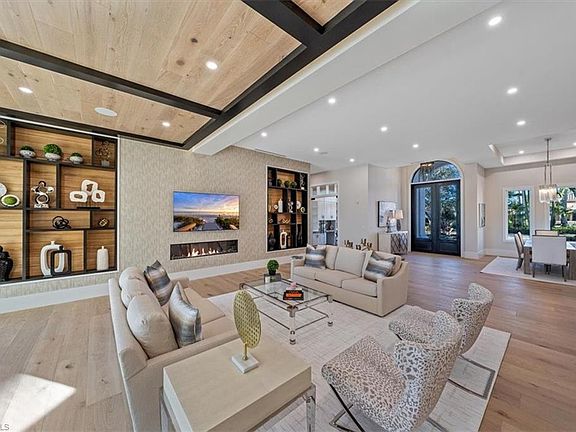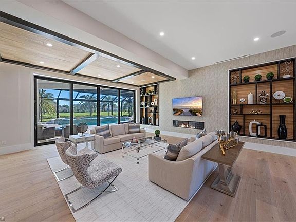 H8395- FULL GOLF MEMBERSHIP AVAILABLE IMMEDIATELY! The masterful transformation of this exceptional home is tantamount to brand new construction! The list of “news” is so long there is little room for descriptive language! Renovated from top to bottom, inside and out, this home features all new drywall, electrical, plumbing, HVAC (whole house and garage,) new gas lines, new impact sliders, new Anderson windows and doors plus a NEW ROOF! The spacious and reimagined lanai features a brand new outdoor kitchen along with a sparkling custom pool/spa with equipment updated and upgraded in 2022. The welcoming “lobby bar” with illuminated quartzite counters and transparent enclosed wine wall with stone background opens to the brand new chef’s kitchen with huge island and stunning great room with custom built-ins. The master bedroom with huge closets offers amazing views and a lighted staircase leads to separate guest suites and more long golf and water views. The all new AV system features SONOS in almost every room, pool and lanai and new televisions are in all bedrooms, great room and lanai as well. Professionally decorated and furnished throughout, this home is move-in ready now!