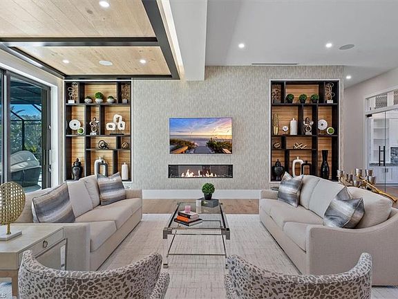 - Built-In Cabinets, Closet Cabinets, Fireplace, Foyer, Laundry Tub, Pantry, Smoke Detectors, Tray Ceiling(s), Volume Ceiling, Walk-In Closet(s), Wet Bar, Den - Study, Laundry in Residence, Screened Lanai/Porch