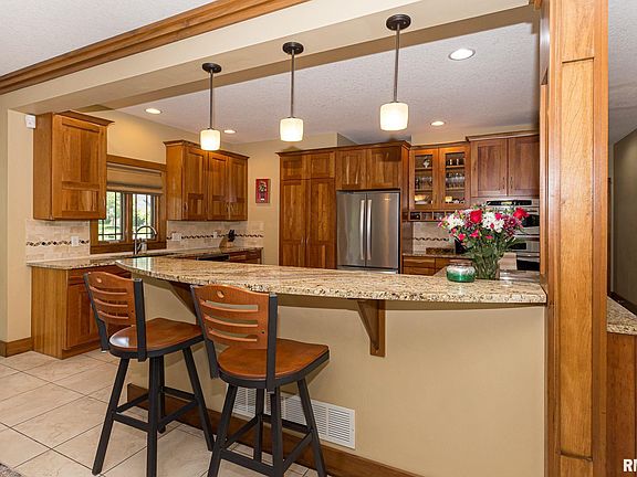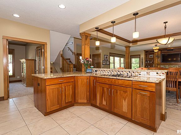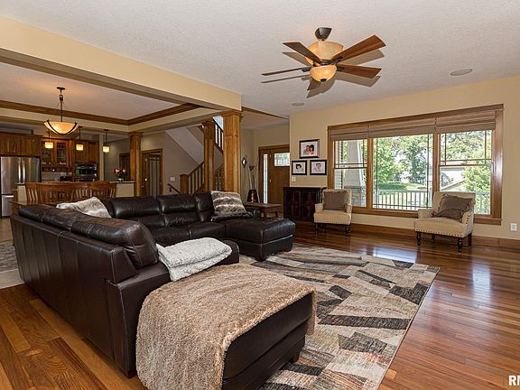 True Craftsman architecture, true craftsman details, true craftsman workmanship. Take a break from white on white millwork and enjoy the rich beauty of furniture quality hand rubbed stained poplar, solid wood panel doors and poplar trim. Top notch Pella wood windows throughout. Majestic terraced setting sits high above neighboring park like open area. Rear load drive allows for multiple car parking. Wooded side yard offers privacy to deck, patio and firepit. Huge covered front porch. Inside enjoy big center kitchen island, granite counters, hidden walk-in pantry, lower level surround sound theater room and designated exercise area. Large Rec. room with walkout to stamped patio. Secure storm cellar below concrete porch, 3 zone HVAC system, 4 zone lawn irrigation and more. Upstairs carpet is new. This home is truly spotless and blows the socks off what you'll find today in the new construction home market at this price range.