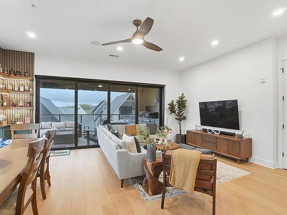 This two-bedroom, two-bath layout lives large, featuring a custom Murphy bed with built-in shelving, a stylish corner bar in the dining room perfect for entertaining, and a collapsible glass slider that opens the main living space to your private park-facing balcony—indoor-outdoor living at its finest!