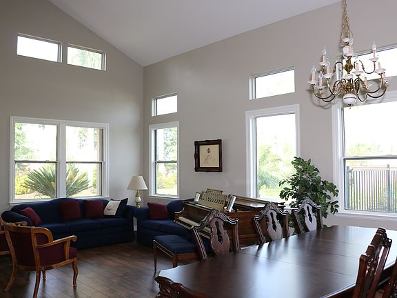 Gorgeous 5 Br 4 full Ba home on just under an acre, level lot! Fully landscaped front and back in lush grass, bushes, palm trees, and flowers. Best exterior features include huge pool with diving board and raised spa with waterfall. Plenty of space to roam, play and relax in and there is also a concrete basketball court that is fully lighted. Great party home with covered patio, and hard-scaping. Fully fenced yard with slump stone and stucco walls. Enter the gorgeous entryway into huge Living/Dining room with two-story vaulted ceilings. Terrific kitchen with plenty of white cabinetry and beautiful granite counter-tops. Center island with gas cook-top. Plenty of storage space to contain all your kitchen items. Kitchen nook with views of the yard and pool. Huge family room with crackling wood/gas fireplace, white cabinetry and planning desk center. There is a huge downstairs bedroom and a full bath, plus separate laundry room with sewing center and lots of cabinetry. Upstairs find a gorgeous master bedroom suite extending the whole width of the home and includes an alcove plus seating area. Master bath has 2 walk-in closets, separate shower and bath with white cabinetry. Another bedroom has separate walk-in closet and separate full bathroom. Complete fresh paint throughout the interior plus all new carpets and laminate flooring make the home look brand new!! Very inviting, functional, and stunning. Three-car garage plus additional recreational vehicle parking with gated entry. See the house lit up at night, and enjoy your future home! Seller will COOPERATE WITH SELLING AGENTS. CALL WES HOOVER 951 808 2200