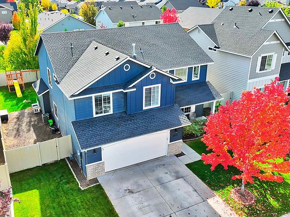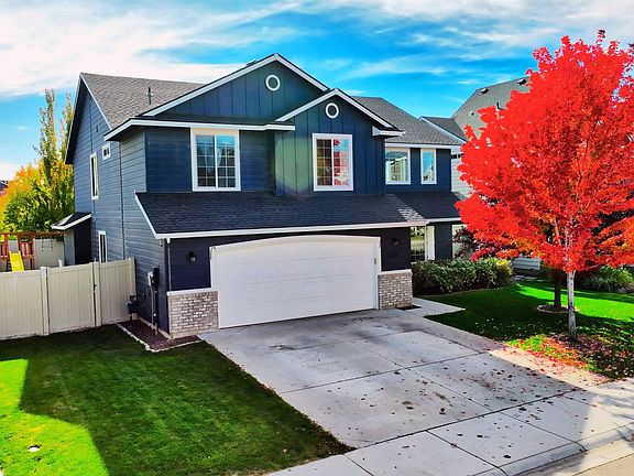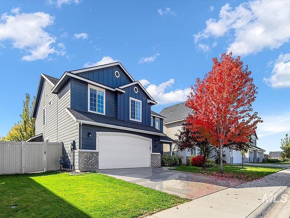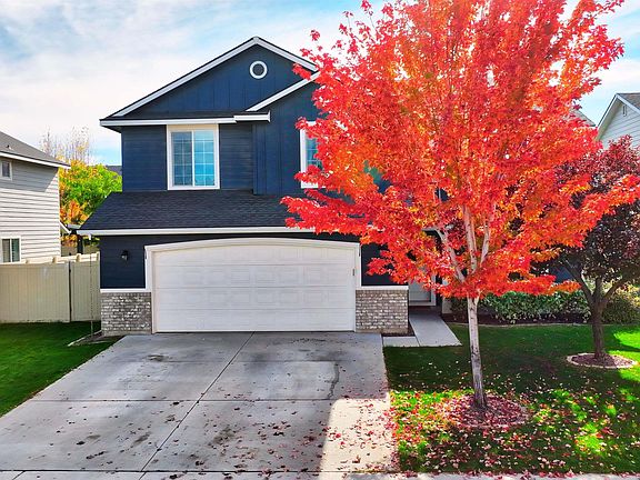 OPEN SAT (10/25) & SUN (10/26) 1-3 PM! Welcome to this charming 4 bed, 2.5 bath home in this centrally located Meridian neighborhood. Built in 2018, this home perfectly blends comfort, modern style, and community living. As you enter, experience a bright and open two-story entry that flows into a spacious living area with laminate floors, a cozy fireplace, and large windows that fill the home with natural light. The kitchen features white cabinets, a large pantry, kitchen island and overlooks the inviting family room, ideal for entertaining or relaxed evenings at home. A convenient main-level bedroom offers flexibility for guests or a home office. Upstairs, you’ll find additional bedrooms, a loft and a comfortable primary suite, giving everyone their own space. Enjoy the outdoors on your welcoming front porch with gorgeous trees that glow with color in the fall or enjoy your private, mature backyard with deck and play structure. Located just down from the community park with pickleball courts, a playground, and a new splash pad coming next summer, this home offers the perfect balance of recreation and relaxation.