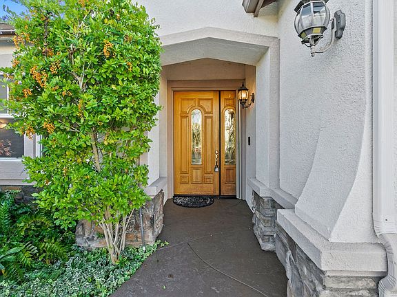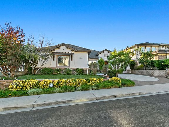 Available NOW! Welcome to this spectacular single-level home boasting 3 spacious bedrooms plus a large, dedicated executive office complete with impressive wrap-around built-in cabinets and a desk. The entry opens to the elegant formal living room and dining room, perfect for hosting, complemented by a nearby powder room ideal for guest convenience. Beyond the formal spaces, the floor plan opens to a sunlit family room featuring custom built-ins and an inviting gas fireplace with custom tiles as a stunning focal point. This space flows directly into the expansive kitchen, which offers abundant storage cabinetry, full complement of appliances, and a separate eat-in breakfast nook. The primary suite is a private retreat, offering a luxurious ensuite bathroom with a walk-in shower and dual-sink vanity, a generous walk-in closet, and private sliding door access directly to the backyard. The two additional bedrooms are spacious, feature ample closets, and share the well-appointed main full bathroom. Functionality is key with an inside laundry room adjacent to the 2-car garage with direct access. Outside, the spacious backyard is an entertainer's dream, featuring a custom-tiled BBQ counter with built-in grill, upper and lower patios with the lower section covered by a beautiful pergola with shades, all overlooking the unobstructed canyon behind with access to a walking trail and truly mesmerizing sunset views. This exceptional property is situated in the highly prestigious guard-gated neighborhood of Hillcrest Estates, offering residents the ultimate in security, privacy, and proximity to many nearby shops and restaurants.