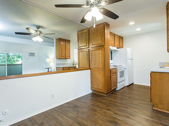 This darling one-bedroom condo has been recently remodeled just for you! Plank flooring, dual paned-windows, fresh paint and smooth ceilings throughout make this a move-in ready opportunity. The kitchen comes complete with new, quartz countertops, sink and range and the refrigerator is also included in the sale. The adjacent dining area has built-in cabinetry providing loads of additional storage and creating a nice focal point for the space. The bath has an upgraded shower surround, glass enclosure and new quartz countertop. Ready for summer, the air conditioning unit is NEW. The bedroom good sized and features a walk-in closet. As an upstairs unit, this home has a shady balcony and tree-top views of the surrounding area and ridgelines. Located at the edge of the complex, it enjoys easy access to open street parking for guests. Just a block away from shopping, restaurants and Starbuck's - it's a great spot if you like to walk to dinner or coffee.
