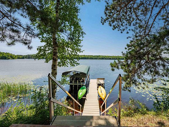 This charming three-bedroom log home is tucked back from the road on a private, tree-lined lot with beautiful perennial gardens and 155 feet of great shoreline on Prairie Lake.