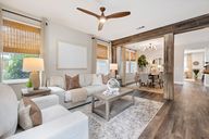 Custom fireplaceStylish light fixturesLuxurious primary suiteVersatile downstairs officeCharming front patioInviting floor planQuartz countertops