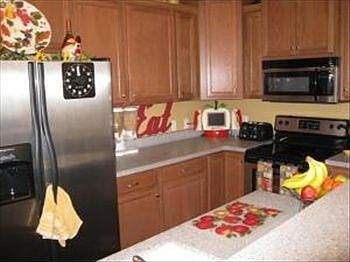 LOADED WITH UPGRADES! Rich Brazilian Hardwood (Timborana) Floors in Kitchen, Dining & Living Room. Ceramic Tile in Entry Foyer, both Bathrooms and Laundry Room. Large kitchen w/ snackbar leads to dining area with cathedral style ceilings peaking at 16 feet high. Stainless Steel appliances, Solid Surface countertops, laundry room with full size washer & dryer, fireplace and deck. MASTER BEDROOM HAS TWO WALK-IN CLOSETS! Clubhouse, pub & grill, lounge, media room, fitness center, activity room, pool & hot tub.