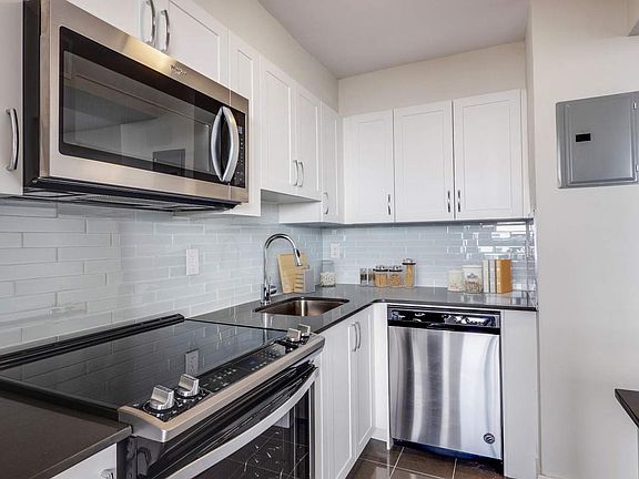 Residents enjoy spacious studio, 1 bedroom, and 2 bedroom suite designs with re-finished hardwood flooring in the living rooms and bedrooms. Kitchens feature stone-like ceramic tile and are equipped with elegant white cabinetry, self-closing drawers, and four stainless-steel appliances.