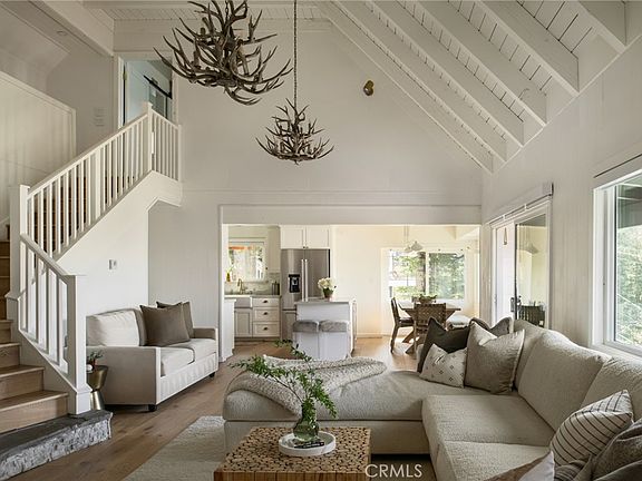 The Palisades Retreat, a serene escape with expansive LAKE VIEWS and LAKE RIGHTS. Sited high in the trees, this home offers expansive and panoramic views of Lake Arrowhead and the forest beyond. Authentic character and thoughtful upgrades are complimented by the surrounding nature through every window. On a sprawling lot on Palisades Point, this charming and contemporary home offers the ultimate lakeside experience. A striking living room displays vaulted ceiling, hardwood floors, a wood burning fire place and tremendous natural light. Adjacent and with an open flow, the updated kitchen features high-end appliances, designer finishes and access to both the indoor and outdoor dining spaces. Enjoy meals both inside and out with unobstructed water views. One of three bedrooms, full bath, and laundry complete the main level. The upper level offers a spacious primary suite with a walk-in closet and spa like full bath. Breathtaking views from the large windows are a dream to wake up to. The third bedroom has built-in double bunks beds, comfortable for 6, an en-suite bath with clawfoot tub and lake views that continue throughout the home. The backyard is perfect for hosting, with multiple level spaces and a convenient flow from the kitchen. Take a dip in the hot tub under the pine and oak trees. Desirably located near the quaint town of Cedar Glen and a short distance to all Lake Arrowhead has to offer. A truly rare find in a coveted and serene historic neighborhood. Single Slip Dock Available for additional $$.
