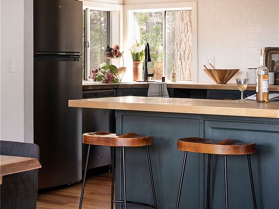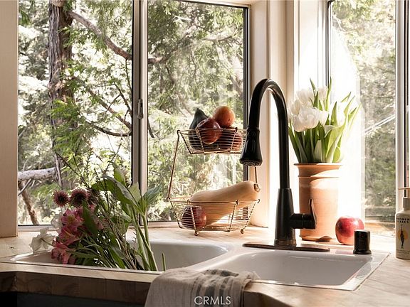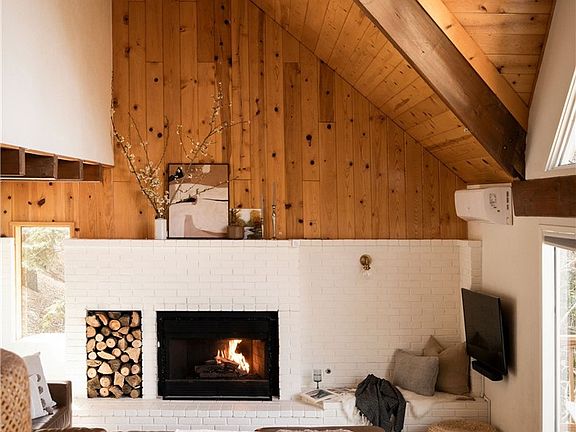 Perched in the tree tops of the majestic Southern California mountains, this meticulously remodeled mountain home offers a seamless blend of rustic charm and modern comfort. Step inside to discover a turnkey lodge where each detail has been thoughtfully curated for utmost enjoyment. Upon entry, coveted vaulted ceilings with an open concept layout seamlessly connects the living, dining, and kitchen areas. Adorning the wall is a striking painted brick hearth, adding character and charm. Abundant windows frame breathtaking views of the surrounding landscape, bringing the outdoors in. No detail has been overlooked in the updated kitchen with a walk-in pantry and butcher block counters. This main floor also boasts a convenient bedroom and full bath and deck: soak in the tranquility of distant tree line views, a perfect spot for morning coffee or evening relaxation. Upstairs, find two additional oversized bedrooms and another 3/4 bath. Retreat to the lowest floor to discover a haven for entertainment and relaxation. Here you will find a family room complete with a pool table, large television, laundry area and a versatile 4th bedroom to offer added convenience and flexibility. This stunning home comes fully furnished, ready to enjoy from day one. Boasting a successful short-term rental history with an active permit, this property presents an enticing opportunity for those seeking income generation. Buyers are encouraged to conduct due diligence regarding permit transfer. Located in close proximity to Lake Arrowhead and its tranquil trails, as well as conveying lake rights, this retreat offers endless opportunities for outdoor recreation and relaxation. Dual pane sliders and dual AC units ensure comfort year-round, with a split AC unit in the living room for added convenience. Whether you are seeking a full-time residence, a vacation home, or an income-generating property, this Lake Arrowhead retreat offers the perfect combination of relaxation, convenience, and opportunity. Don't miss your chance to make this mountain oasis your own.