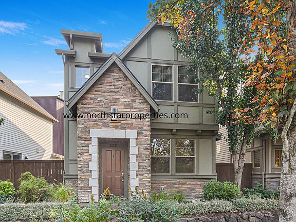 Welcome home to your charming home in the quaint Villebois community of Wilsonville. You will love this location directly across from one of the many parks in Villebois, and just around the corner from the piazza, with many activities including concerts and the Wilsonville Farmers Market. As you enter you are greeted by the open concept design featuring high ceilings and engineered hardwood floors. Enjoy the cozy gas fireplace in the living room and the large, inviting island in the kitchen featuring granite counters. Enjoy the spacious dining area with slider leading to the outdoor patio. There is also a powder bathroom conveniently located on this level. Upstairs you will find the primary bedroom with ensuite, 2 additional bedrooms, hall bathroom and an open landing area(flex space). The generous sized primary suite features vaulted ceilings while the ensuite offers a double sink vanity, soaking tub, walk-in shower and walk-in closet. The laundry room is also located on this level for added convenience. No pets and no smoking please. Lowrie Elementary, Inza R. Wood Middle School, Wilsonville High School.