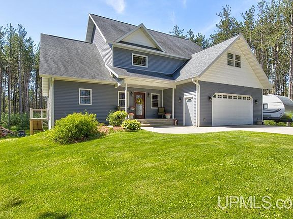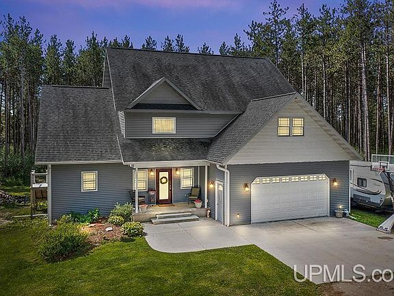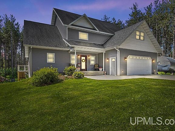 Welcome to this stunning home with a grand entrance that will take your breath away on 36 acres. As you step through the doors, you are greeted by a soaring ceiling and elegant staircase that exudes luxury and sophistication. The spacious foyer features beautiful tile flooring and a crystal chandelier that sparkles in the natural light. This spacious home features four bedrooms, three bathrooms, a bonus room, and an office, providing plenty of space for a growing family or those who love to entertain. The open floor plan flows seamlessly into the formal living and dining areas, ideal for hosting gatherings and entertaining guests. The gourmet kitchen is a chef's dream, complete with top-of-the-line appliances, granite countertops, and a center island with bar seating overlooking the lush backyard. The master suite is a true retreat, featuring a spa-like ensuite bathroom with a soaking tub, double vanity, and walk-in shower and ample closet space. Upstairs, you will find three additional bedrooms and a full bathroom, perfect for guests or children. The bonus rooms can be used as a playroom, media room, or even additional bedrooms if needed. The walk-out basement provides even more living space, with an open slate to make your own and plenty of storage options. The two-car attached garage offers convenience and security for your vehicles. Outside, the expansive backyard is perfect for outdoor entertaining with a deck perfect for hosting outdoor gatherings. With plenty of land to roam and explore, this property is truly a nature lover's paradise. This property boasts a lush red pine tree plantation that is ripe for harvesting. The marketable timber on this panel of land presents an opportunity for investors or individuals looking to capitalize on the diversity of the property. The surrounding land is teeming with white tail deer, providing the ultimate hunting experience for avid outdoorsmen. This location is an ideal spot for the outdoor enthusiasts looking to explore the beautiful surroundings of the Upper Peninsula. Whether you enjoy snowmobiling, ATV, or UTV riding, you’ll find plenty of opportunities for adventure just minutes from the trail system directly from your front door. Top notch proximity to amenities and services in Escanaba just a few miles away; just a few miles away in the opposite direction you will be in Bark River with excellent schools and the Island Resort and Casino for entertainment. This property is also an ideal location for the golf enthusiast with several golf courses to choose from. This home truly has it all - from the grand entrance to the luxurious finishes and impeccable attention to detail, this is a property that must be seen to be believed. Don't miss your opportunity to call this exquisite residence your own. Schedule a showing today!