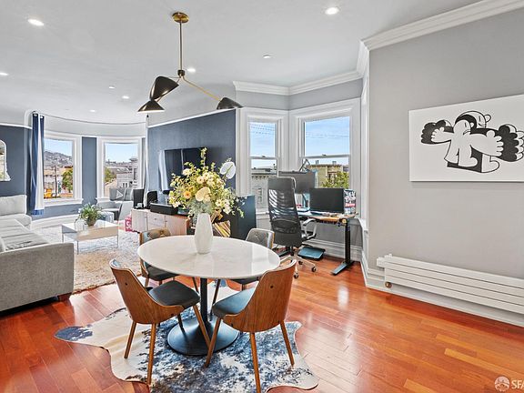 Nestled in the heart of the Mission, 2893-A 24th Street is a luminous top-floor corner residence overflowing with character. Sunlight floods through three sets of bay windows offering sweeping views of Twin Peaks and Sutro Towers. The open layout showcases a gourmet kitchen with Bertazzoni range, Bosch dishwasher, wine fridge, and island with breakfast bar. Entertain in a generous dining area, lounge in the elegant living room, or retreat to the bedroom, complete with custom office nook, skylight, and walk-in closet. Includes in-unit laundryandparking.