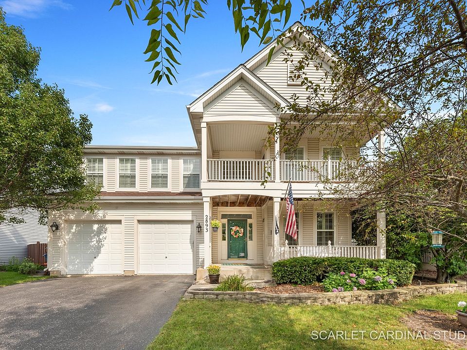 Welcome to this stunning home in the highly sought-after Fisher Farms neighborhood! With over 3,500 sq ft of living space, this house offers ample room for everyone. As you walk up to the house, you'll fall in love with the charming front porch complete with a porch swing-perfect for relaxing on a warm evening. Step inside to a beautiful foyer with hardwood floors and vaulted ceilings, creating an inviting and spacious atmosphere. The living room opens up to the dining room, which is adjacent to the huge eat-in kitchen that seamlessly flows into the family room, making it ideal for entertaining. A large 1/2 bath on the first floor offers the potential to be converted into a full bath, adding to the home's flexibility. Conveniently located on the 1st floor, the laundry room adds to the ease of daily living. The 2nd floor features 4 spacious bedrooms, including a luxurious master suite with its own private balcony overlooking the front yard-a perfect spot to enjoy your morning coffee. The finished basement adds even more living space, featuring a 5th bedroom, a full bathroom with a walk-in shower, and plenty of storage. The fully fenced backyard is perfect for outdoor activities and gatherings, and the neighborhood itself is fantastic, with a DIY pickleball court right on the street. Plus, you'll love the great location near Delnor Hospital and tons of shopping. Don't miss out on this incredible opportunity to own a home in Fisher Farms!