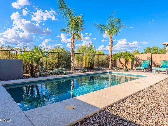 Better than new, this 4-bed, 3.5-bath home with office and 3 car garage offers 2,843 sq ft of living space on a 5,681 sq ft premium view lot in Vistancia Village. The first-floor primary suite features a stunning ensuite bathroom and fully custom walk in closet, while the gourmet kitchen features a waterfall island with seating, stainless steel appliances and a gas cooktop with modern vent hood. The great room, full of natural light, showcases a fireplace and panoramic super-slider doors opening to a covered patio a play pool and an incredible view! Additional highlights include shutters throughout the entire home, custom shiplap and board and batten details, and upgraded fixtures. Community includes top-rated schools, Pools, walking trails, parks, playgrounds &more!