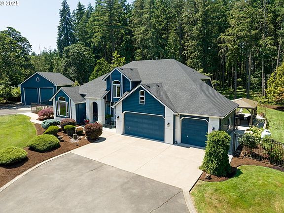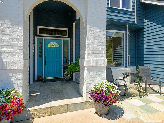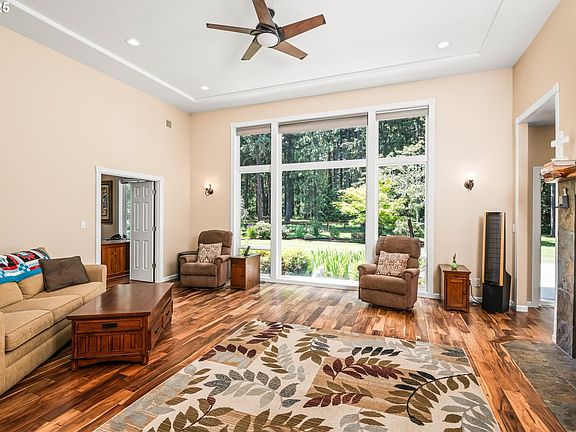 Absolutely stunning! Discover country living at its finest in this peaceful haven situated just 15 minutes from Eugene. Blending luxury, convenience and comfort, you’ll find thoughtful and attractive features throughout, like soaring 13’ ceilings, engineered acacia hardwood floors, and beautiful custom cabinetry and built ins. The gourmet kitchen is a chef's dream with gorgeous quartz counters, Wolf 5-burner gas cooktop, two hammered copper sinks, an abundance of hickory soft-close cabinets, pot-filler, trash compactor and more! Step into the living room and be greeted by spectacular floor to ceiling windows with serene views of the park-like back yard. The abundance of windows throughout bathes the entire home in natural light and ushers the beauty of nature inside. The spacious primary bedroom boasts a cathedral ceiling and luxurious ensuite with heated travertine floors, dual quartz vanity, soaking tub, and walk-in tile rain shower with multiple heads. Upstairs you’ll find three generously sized guest bedrooms and a nicely appointed full bathroom. Don’t miss the mini-door to the lighted storage area that would also make a great secret playroom! The fully equipped shop features 12’ overhead doors, epoxy floors, 220, RV hookups, full bathroom, laundry hookups, and is plumbed for compressed air. Behind the shop you’ll find a fenced garden and the cutest cottage-style potting shed. Beyond the manicured yard is a natural, lightly wooded area with a treehouse and a gate to a path across Army Corps of Engineer land leading to the lake. You just cannot beat the beauty of the outdoor spaces here which include an expansive patio and pavilion, already plumbed and wired for an outdoor kitchen. Recent updates include new roof, well pump, and water purification system with transferable warranty. And you can rest easy knowing that a Generac generator serves the entire home in the event of an outage. Make an appointment to see this home today. You’ll be glad you did!