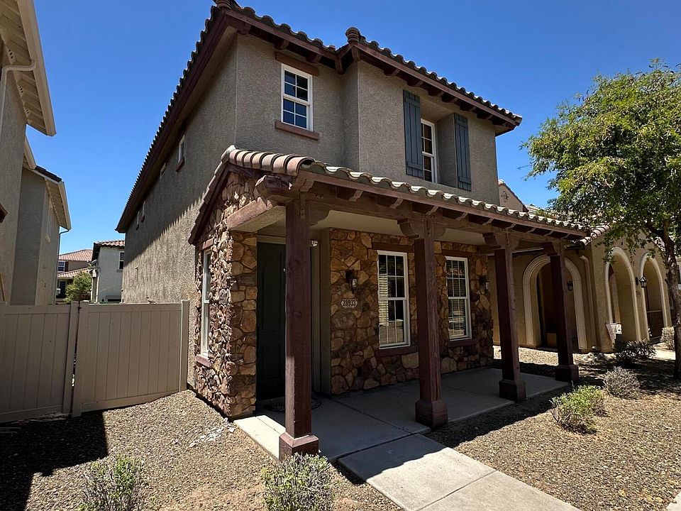 Fantastic 3 bedroom home in an incredible community. Beautiful Cherry cabinets, granite counter tops, all tile downstairs. Front load Washer and Dryer. Private community pool plus all the pools, spas, trails, and golf that Vistancia has to offer.