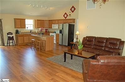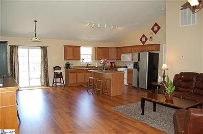 A better way of life awaits you in this spacious one-story home on over an acre of land! This house is only ten minutes from Simpsonville shopping, and also a mere half-mile from Woodmont High School. Your children could WALK there! As this home is not in a subdivision, there is no HOA fee, so you can do as you please (contact Greenville County, though!) with your new homestead. An open floor plan with vaulted ceilings and laminate wood floors create a welcoming environment. The house has a split bedroom layout, featuring a master bath with garden tub, separate shower, and large walk-in closet. The back yard is fully fenced (though it does not cover the entire acreage) with a separate area for the dog--and for the hens! Just imagine--you can enjoy free eggs for life! The hens come with the property. But, if you do not want them, the owners will be glad to give them to others. Immaculately maintained by its current owners, this home is move-in ready!