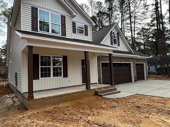 Beautiful 3 bedroom 2.5 bath home WITH finished bonus room! Nestled in the lovely Deercroft Gated Golf and Lake Community! Open floor plan perfect for entertaining with elevated finishes. The Builder, Precision Construction and Restoration, proudly offers stunning countertops throughout, stainless steel appliances and tile backsplash in the kitchen also boasting an island for additional countertop space. Primary bath features a large tile shower, separate soaking tub and dual vanities. You will feel the difference with the elevated finishes in this one! Enjoy the brisk fall evenings on your covered back deck and all of the additional storage of a third garage! Deercroft Clubhouse with pool, playground, courts and lake amenities! Easy commute to Ft Bragg and Southern Pines!