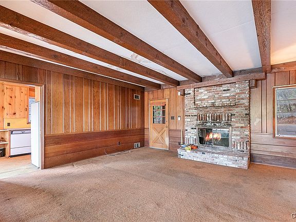 Lake Front with Single Slip Dock S525. Fantastic location within minutes to the village, this waterfront is the perfect vacation or full time home. 3 bedroom 2 bath adorable retro cottage style cabin. This is a fixer. Parking deck lost to bad snow storm 2023. Rear deck has caution tape. Bring your contractors. Enormous potential.