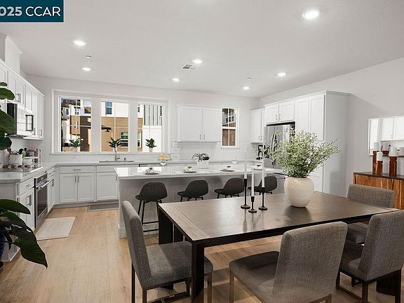 OPEN 9/6 & 9/7, 2PM-4PM! Modern living meets convenience at The Hideaway. This 4BR/3.5BA townhome offers 1,969 sq. ft. of bright, low-maintenance living with minimal shared walls and no backyard upkeep—ideal for today’s active lifestyle. The entry level features a private in-law suite with full bath, perfect for guests or multi-gen living. On the main level, the open-concept great room connects the kitchen, dining, and living areas, highlighted by large windows and a private balcony with views. The gourmet kitchen includes an oversized quartz island, stainless appliances, and ample storage. Upstairs, the primary suite offers a spa-like bath with dual sinks, walk-in shower, and spacious closet, plus two additional bedrooms and laundry. Upgrades include smart home features and paid solar. Community amenities include BBQ areas, bocce, walking trails, and a dog wash station. A private, low-maintenance lifestyle just minutes from BART, Cal State East Bay, and major freeways.