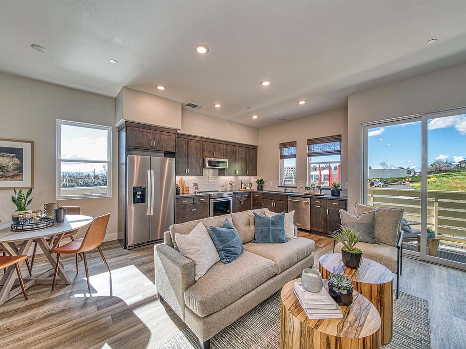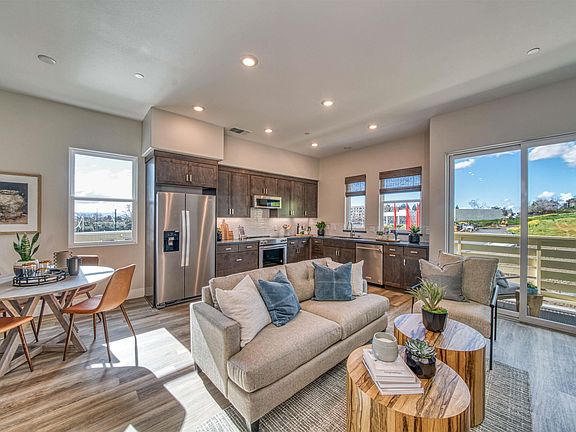 Brand New 1,563 square foot townhome style. 3 bedrooms, 3 full baths. Popular open floor plan concept. Beautiful interior finishes. High ceilings. Large Master bedroom with 12 feet ceiling, fits a king size bed with two 36 inch night stands. 2-Car tandem Garage with interior access. Highly desirable community with a beautiful hillside backdrop, overlook park and dog park with a public walking trail within the community. Great location! Short walk to BART. Easy access to 880 and 580. Close by shopping and restaurants. This home is located at SoMi HayPark, our popular Plan 1 Hayward, CA 94544. Photos are from model home and are not representative of finishes in listed home.
