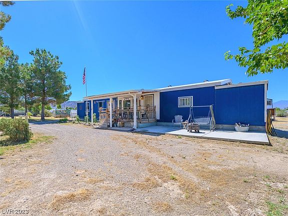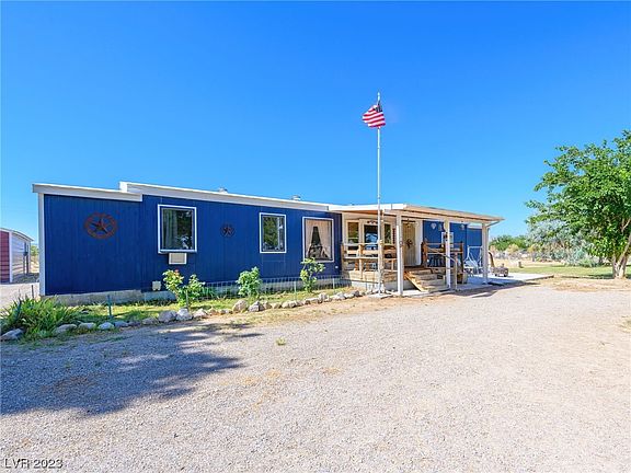 Is it possible that this could be the one? This home offers a serene retreat for those seeking tranquility and stargazing, away from the city lights while remaining close enough for a convenient commute to work. This 2.07 acre property has everything you need to enjoy a peaceful, relaxed lifestyle out in the country with room for horse corrals, chickens or other animals. Only 45 minutes from Vegas/Henderson. No HOA so do what you want! Miles of trails to ride the horses or ATV's, new garage/shop to store the toys in. Washer/Dryer, lawnmowers/tiller, tools, Generac generator, refrigerator in garage, large 8'x16'x12' 2 story storage shed included in the sale of the property. New roof put on in 2017. Home is on septic and has its own water well.
