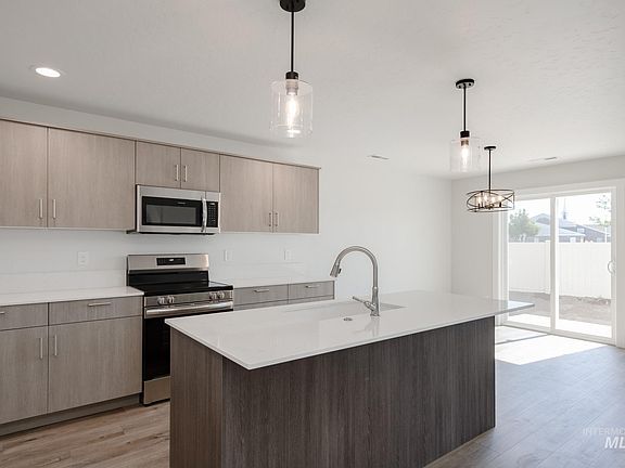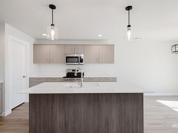 Get up to $30K now thru 11/30/2025 with the Festival of Homes Promo! Embrace the comforts of a brand new home in Kuna, Idaho. The Hugo 1650 is endearingly charming and reassuringly practical. The main level welcomes occupants and guests alike with open and friendly living spaces. The kitchen comes with stainless steel appliances and stylish solid surface countertops, adding both functionality and aesthetics to the kitchen. Head upstairs where a primary suite spans the entire rear of the home and contains a walk-in closet and spacious en suite bathroom. The two other bedrooms and the laundry room are also situated upstairs along with a full bathroom. The garage offers plenty of space to park cars and toys or use as storage. A versatile layout provides endless possibilities for customizing the home to suit your needs. With thoughtful touches throughout, the Hugo is designed to enhance your lifestyle. You'll quickly feel right at home. Photos are similar. All selections are subject to change without notice, please call to verify.