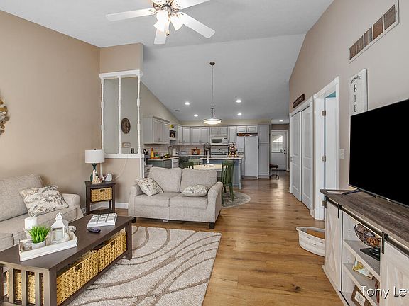 Seller instructs listing brokerage to hold all offers until 2/15/23 5pm. Turn key condition! All redone + daylight level gutted. All new carpet, flooring, vinyl planking up and down. New doors throughout, new fixtures, kitchen countertops, cabinets and sink, new drywall down, both baths new w/solid surface counters, all done in 2021. Roof 7 years, furnace 2 yrs, dishwasher 1 yr, stove 5 yrs, refrigerator 4 yrs, water heater 2-3 years, new windows up and down including slider. Deck restained and boards replaced! Great open floor plan w/cathedral ceilings. Open kitchen w/subway tile backsplash all appliances included. Beautiful sliding barn doors to main floor laundry. Slider to deck w/steps down. MBR, has walk in closet. Seller reserves right to set offer deadline. Room desc: Foyer, br
