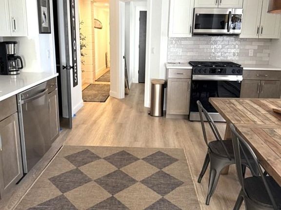 Electric fireplaceSpacious back deckBright sunnyLaminate floorsFhw heatSs appliancesFresh coat of paint