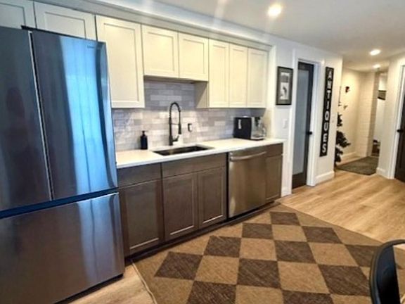 BRAND NEW WINTER SEASONAL RENTAL AVAILABLE DECEMBER 1st, 2025/2026, w/utilities included! Newly renovated, bright, sunny, 1st floor unit, 2 bed, 1 bath, in a great location within walking distance to numerous popular restaurants as well as North Conway Village's restaurants and shops. New laminate floors, quartz countertops, SS appliances, new lighting, a fresh coat of paint and a lovely living room w/electric fireplace and FHW heat. Shared laundry on 1st floor and a spacious back deck to sit out on. Also, within walking distance to many hiking, cross-country and snowmobile trails. Minutes from Cranmore and Attitash ski mountains and all the other amazing activities the Mount Washington Vally has to offer. Pets will be considered. Application is required for credit, background, and income verification. No smoking is allowed.