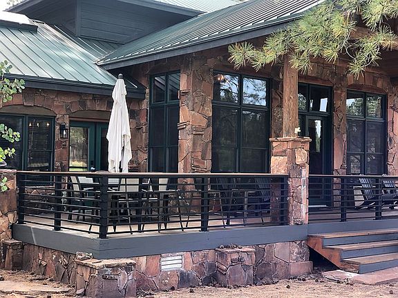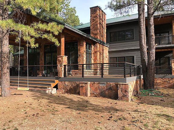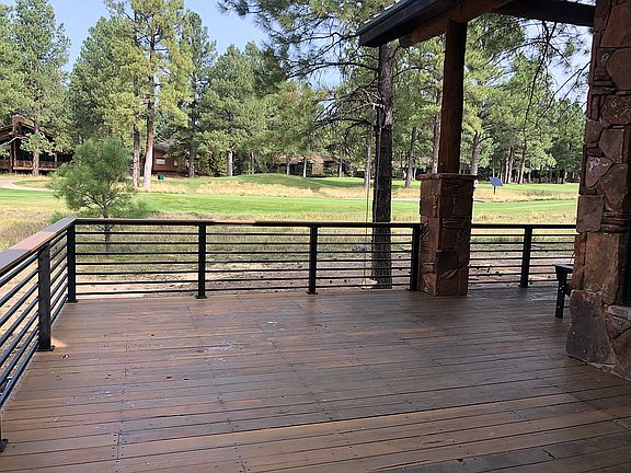 Vacation rental in Forest Highlands, Flagstaff, AZ. Come and escape the heat or just enjoy the 4 seasons in our beautifully renovated home that includes 4 beds, 3.5 baths, large dual master suites, plus bonus room / loft. Pictures don't do justice to the beautiful, over-sized deck that opens to the 6th tee-box of the renowned Canyon Course, as well as an open flat yard perfect for kids to run or for adults games. The deck includes covered seating, as well as a dining table that seats 6, and a bar top that seats 4 facing the golf course. This home has a great open floor plan that comfortably sleeps 10. A large living area opens to a dining area and kitchen with bar. The first floor also has a powder bath, laundry room and master bedroom with king bed and large en-suite. On the second floor there is a master bedroom with king bed and large en-suite that includes a claw foot tub and separate shower. The second floor of the home also includes two additional bedrooms (two bunk bed sets that sleep 4 in one room, and a separate bedroom with two double beds), plus an open loft with cozy couch and tv, kid's play area, and hall bath with double sinks. The homes comes equipped with towels and bed linens, and includes a fully equipped kitchen with everything you need including dishes, glassware, flatware, pots and pans, cooking basics, coffee maker, toaster oven, and a Viking stove. Working remote or have children in distance learning? We have you covered with super high speed 1 gigabyte internet service. This part of the community also has great cell service for both AT&T and Verizon carriers. The home has an over-sized two car garage and large driveway that can accommodate several additional cars, and basketball hoop in the front. The location in Forest Highlands is perfect, as the home is located on the flat side of the community that allows for walking and biking throughout the community, and easy access to the Wetlands, both clubhouses and numerous parks. Close to downtown Flagstaff, NAU and a quick day trip to Sedona or Oak Creek. HOA Note: Use of any of the common area facilities (Golf Courses, Golf Practice Areas, Golf Course Paths, Putting Course, Pools, Tennis Courts, Clubhouses, Restaurants, Fitness Centers, Sports Park, Ponds/Lakes, walking paths, disc golf course, playgrounds etc.) IS STRICTLY PROHIBITED by anyone leasing a home unless accompanied by a Forest Highlands Golf Club Member. Renting or leasing a home in Forest Highlands gives you access for ingress and egress to the home only, and use of the roads (not walking trails) for walking/biking. Completely furnished rental. Owner pays for all utilities, HOA, cable, gas. Bring your suitcase and enjoy your stay.