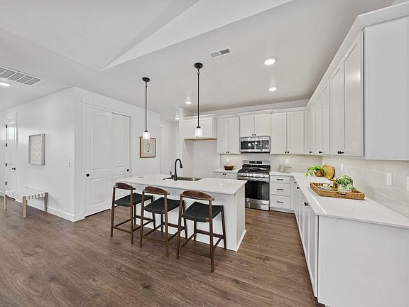 Welcome home to NE Bend's newest community, Artisan's Village, by award winning local builder, Montevista Homes. Tucked within an established neighborhood with breathtaking mountain views and conveniently located within minutes of schools, medical facilities and shopping, The Charlotte plan features 4 bedroom single level living with vaulted ceilings, oversized windows and 8' doors throughout. The vaulted great room and gourmet kitchen featuring quartz counters and a center island is perfect for entertaining. This home includes an array of sought after features including: a/c, covered patio, quartz countertops throughout, 42'' kitchen cabinets, gas fireplace and more.