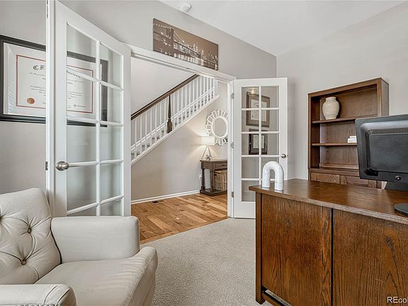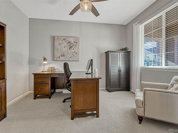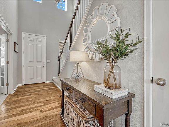 Incredibly well-maintained home in Castle Rock's premier neighborhood - The Meadows! This gorgeous, modern home features an open layout with luxury finishes throughout. The main level is centered around a bright and airy family room with 9' ceilings, plus engineered hardwood flooring, a beautiful fireplace with tile surround, and controls pre-wired for built-in audio! The spacious kitchen features a massive center island, granite countertops, plentiful cabinetry, in-ceiling speakers, stainless appliances including a range with gas stove, pantry, and recessed lighting. The adjacent dining area has vaulted ceilings and is filled with natural light by numerous windows, including a sliding door to your private backyard patio. The main level is complete with a tiled powder room and lovely office with ceiling fan and french doors. Upstairs, four bedrooms are joined by a conveniently-placed laundry room with side-by-side full size washer and dryer! The large primary suite features plush carpet flooring, in-ceiling speakers, and ceiling fan, with en-suite luxury 5-piece primary bathroom complete with tile flooring, granite countertops, dual vanity, tiled tub surround, shower with glass door, and a massive walk-in closet! Three other upper level bedrooms are accompanied by another well-equipped full bathroom, with a dual vanity, granite countertops, and tub/shower. The fully-finished basement features a large, custom wet bar with granite countertops, natural stone backsplash, porcelain tile flooring, sink, full-height refrigerator, AND wine fridge. Another sizeable living room is perfect for entertainment, with recessed lighting and pre-wire for surround sound. The basement also features another private bedroom with adjacent flex space, and another bathroom with tile flooring, and walk-in shower with glass door. The home's private backyard has a patio with gas line for grilling, plus gorgeous landscaping features! This amazing home shows and lives like it's brand new!