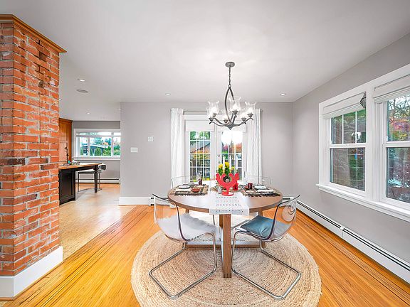 Charming and well-maintained family home in desirable Kerrisdale! Nestled on a sunny corner lot with a south-facing backyard, this residence combines classic character with modern updates. Main level features hardwood floors, spacious living room with electric fireplace, formal dining area, renovated open-concept kitchen with access to elevated porch, versatile den/bedroom, and updated powder room. Upper level offers three generous bedrooms with vaulted ceilings and a contemporary full bathroom. Lower level includes a bright walk-out one-bedroom suite with open kitchen/living area, plus additional family/flex room and den. Upgrades include re-wiring, drain tiles, windows, and boiler. Complete with newer detached garage and extra open parking at rear.