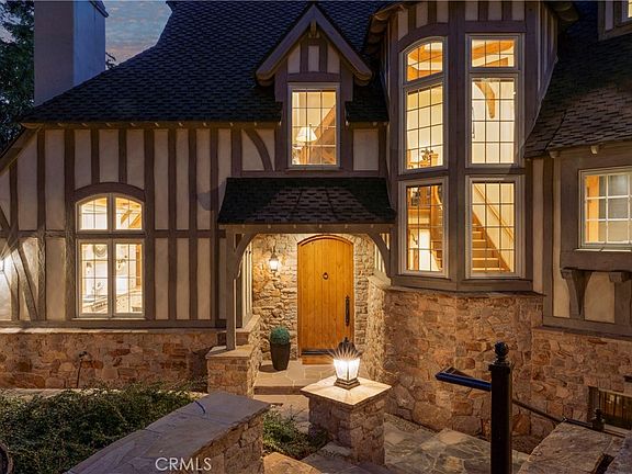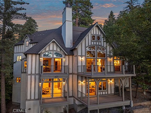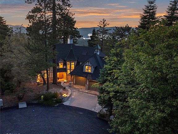 Stunning LAKEVIEWS from the majority of living areas in this luxury, French Normandy mountain retreat! Full lake rights to private Lake Arrowhead and located in a quiet cul de sac of prestigious Cedar Ridge Estates. First time on market since the sellers contracted locally renowned master craftsman Ron Dolman. Cedar Ridge is the address of choice for those seeking a tranquil gated community, large parcel estates, close proximity to the Lake Arrowhead Village/Lake Arrowhead shoreline, yet tucked away with a feeling of the Pacific Northwest. Built in 2010, this 4,651 sq ft, 5 bedroom/4.5 bathroom property rests on 1.4 acres. Boasting an uber functional floorplan with a primary en suite on the main living area and elevator spanning all 3 levels! Master craftsmanship and attention to detail throughout, with custom amenities including: massive hand chiseled open beams, soaring cathedral ceiling, hand cut stone fireplaces, Marvin windows & French doors, oversized baseboards & window casings, iron banister spindles, Rohl & Grohe kitchen & bath fixtures, all appliance Viking kitchen with 2 dishwashers and a wine cooler, Shaws Original farmhouse sink, engineered hickory wood flooring, heated stone flooring in master en suite, knotty alder doors everywhere, sound system that can play throughout the house and the main outdoor deck, 50 year presidential composition roof, 2 A/C units, Generac whole house generator, and oversized 3 car garage. Lower level features 3 guest beds/2 baths and a generous sized family room offering a cozy fireplace and full wet bar with refrigerator.