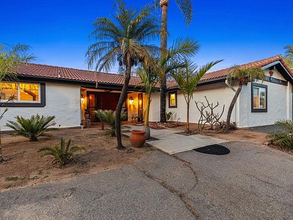 Nestled on 2.55 acres in the peaceful backcountry of Escondido, this beautifully maintained 1,980 sq ft home offers panoramic views that will take your breath away. The spacious layout is filled with natural light, especially in the inviting family room with large picture windows framing the stunning countryside. The lush, tropical landscaping—including palms and rare cycads—creates a serene botanical retreat, while multiple outdoor covered patios make entertaining or relaxing a dream. Ideal for gardening enthusiasts, the property includes two greenhouses and two shade houses. Whether you're looking for a peaceful escape, a place to grow, or the perfect backdrop for your next chapter—this one has it all.