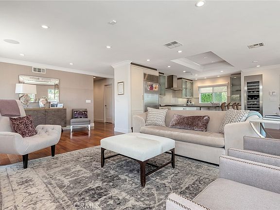 Stunning ocean-view mid-century modern residence perfectly sitting on a spacious corner lot in the highly desirable Top of the World neighborhood just moments from award-winning schools, parks, and scenic hiking trails. This newly refreshed single-level home is enveloped by mature landscaping and wood fencing, creating a private, serene and secluded setting. Inside, beautifully refinished hardwood floors, crown molding, and an open-concept floor plan seamlessly connect the living, dining, and kitchen areas. Multiple windows and sliding doors flood the interiors with natural light and invite effortless flow to a stone-paved wraparound patio complete with a fire pit an ideal backdrop for year-round indoor/outdoor living and large gatherings.
