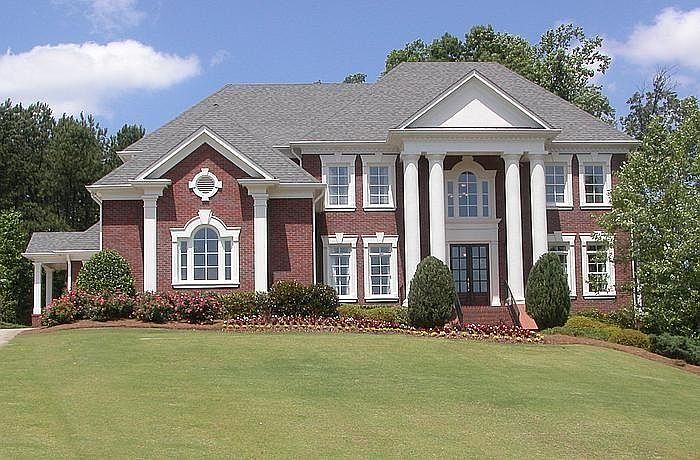 Wonderful four sides brick estate home on almost one acre lot in prestigious Sugarloaf Country Club, a guard gated community. Inviting open floor plan. Gourmet kitchen with creamy white cabinets and granite. Great room with coffered ceiling and fireplace flows to sunroom making for a delightfully open floor plan. All main floor areas freshly painted in modern color palette! Luxurious master suite upstairs with fireplace. Large secondary bedrooms with ensuite bathrooms and walk-in closets. Awesome terrace with gleaming hardwoods, entertaining bar with brick wall, billiards rm, media room, full bedroom/bathroom, bonus room and more. Fabulous, lush, large backyard. House has been freshly painted.