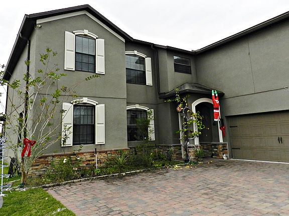 Awesome home with all the extras you would want! This 5 bedroom, 3 bath well maintained home, built in 2014, has a fantastic floor plan! Pavers on the driveway and front porch lead to a double door lead glass entry. Inside, you have a gorgeous living room, that moves you into the kitchen and family room area with a spectacular view of the small lake/pond looking Beautiful scenery! The kitchen is spacious with great cabinetry and stone counters. There is a kitchen nook and a separate full size dining room, just off the kitchen. In the back of the home is a large, screened in porch, perfect for entertaining! Also downstairs is a large bedroom with a full bath and there is a full size close to the spacious 3 car garage. Upstairs sits the Master bedroom Suite and master bath. Awesome master bathroom! The Master Bedroom is 24' x 16' and overlooks the lake/pond with a full size private balcony. There also is a nice size loft upstairs, great for studying, games ,watching TV or reading and relaxing, and off of the loft, the additional 4 bedrooms and one baths and large laundry room. There are two HVAC systems and the home has been well cared for over the years . Neighborhood has a beautiful community pool, clubhouse and playground. Home is located near the Lake Nona shops and restaurants and has easy access to the Orlando Int'l Airport. Great home, great location, Great neighborhood! All the amenities you could ask for, plus spectacular waterfront views from your home! Come take a tour and you will love it!