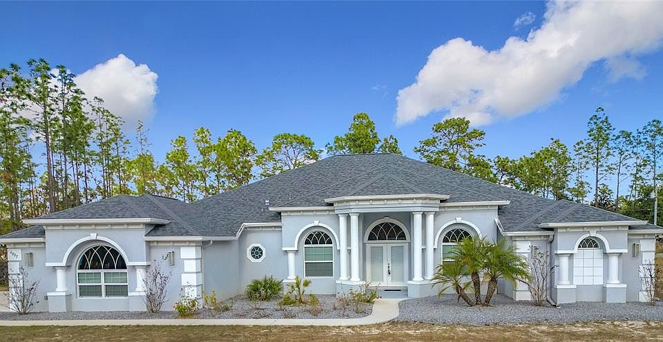 One or more photo(s) has been virtually staged. Skip the expensive, exhausting process of building from scratch — and start enjoying your home today! Discover this rare gem: a meticulously designed, single-story pool home nestled in the heart of Beverly Hills. Built in 2023, this stunning property offers all the elegance of a brand-new home, sitting proudly on a sprawling one-acre lot. With nearly 3,500 square feet of thoughtfully designed living space, this residence features 3 spacious bedrooms, 3 luxurious bathrooms, and a versatile flex room to suit your lifestyle needs. From the moment you step through the grand entrance, you’ll be captivated by the open-concept layout with the 10 ft high ceiling, and the brand new luxury vinyl flooring, perfect for modern living and entertaining. The gourmet kitchen is a chef’s dream, blending high-end finishes with functionality, while the spa-like master bathroom is your private retreat, exuding tranquility and sophistication. The split-bedroom floor plan ensures maximum privacy for all, with ample space for gathering and creating memories. Step outside to the expansive screened-in pool area, where you’ll find a resort-style haven ideal for soaking up the Florida sunshine or hosting year-round gatherings. The pool features a flat-bottom design and color-changing lights, ensuring a smooth, effortless, and fun swimming experience. The oversized deck provides ample lounging and entertaining space, making it a true outdoor sanctuary. There is also an outdoor shower provides added convenience. An irrigation system ensures easy maintenance of the landscaping, while a wired security system with cameras provides coverage both indoors and outdoors. Additionally, the garage and pool patio are pre-wired for TVs, offering flexibility for entertainment setup. Conveniently located just minutes from premier shopping, dining, golf courses, and entertainment, and a short drive to the state parks, this home offers both luxury and accessibility. Don’t miss the exceptional opportunity to own this beautiful home! **Virtual Walk available: https://nodalview.com/s/3cPCBiFnDEZ8kxLg3QRV3c