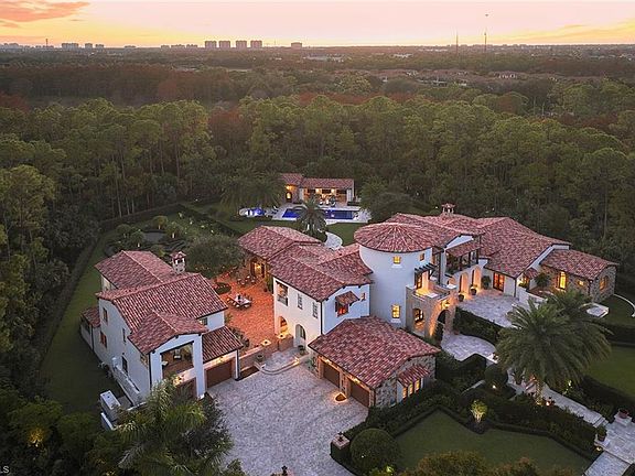 Welcome to 28970 Il Cuore Court, a masterpiece in the prestigious Mediterra Golf Club community. Crafted by London Bay Homes in 2017, this Italian Tuscan-inspired estate spans nearly two acres, surrounded by a serene 50-acre preserve, offering unmatched privacy and tranquility. This magnificent estate offers immediate Mediterra golf membership eligibility and consists of a main house, guest house and pool pavilion. No detail has been overlooked. From the moment you enter the two-story rotunda foyer, you are greeted by the grand staircase, subtle Venetian plaster walls and exquisite marble flooring. The custom kitchen is a chef’s dream with dual AGA ranges, English bespoke Smallbone cabinetry, Sub-Zero refrigerator and beverage drawers along with dual dishwashers and ample space to create that ideal holiday dinner. The kitchen opens to a spacious family room featuring a vaulted wood beam ceiling with views to an inviting central courtyard highlighted by reclaimed Chicago brick pavers overlooking stunning Italian gardens complete with a variety of citrus trees. Relax and entertain family and friends in the mild Naples climate at the separate pool pavilion featuring a pool bath, full kitchen, 54-inch Viking grill and covered great room area with automated screens and shutters opening to a mosaic-tiled pool, natural gas fire pit and 14-person spa. The detached guest house with full kitchen, living room and two bedrooms with en suites is ideal for out-of-town guests. The elegant main house also includes dual studies and a spacious primary suite with a private screened lanai. Additional features of this unparalleled estate include a 100-kilowatt generator capable of operating the entire property, four-car climate-controlled garage spaces and Crestron home automation. A world of luxury awaits you in the exclusive Mediterra community with two 18-hole Tom Fazio-designed golf courses, a full-service wellness and fitness center, and a magnificent recently refurbished beach club complete with a rooftop pool and waterfront dining on the white powdery sands of the Gulf of Mexico. Don’t miss your chance to own this extraordinary estate!