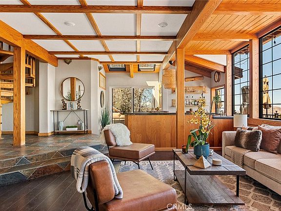 - Beamed Ceilings, Breakfast Bar, Balcony, Ceiling Fan(s), High Ceilings, Living Room Deck Attached, Multiple Staircases, Partially Furnished, Bar, Loft, Main Level Primary, Primary Suite, Wine Cellar, Workshop