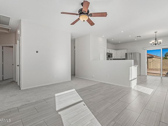Charming 3-bedroom, 2-bath home in The Villages at San Tan Valley featuring fresh interior paint, new carpet, and an open floorplan perfect for modern living. Enjoy a spacious kitchen with a breakfast bar and a backyard with a cozy outdoor fireplace. Conveniently located near shopping and schools!