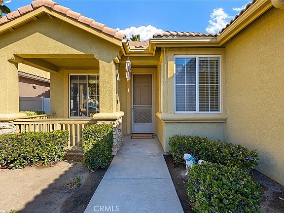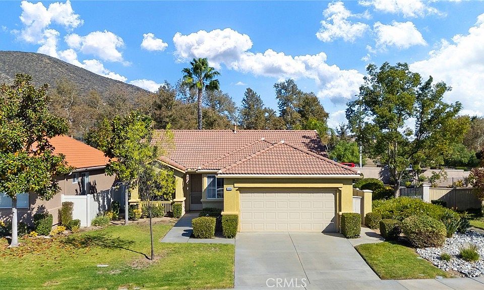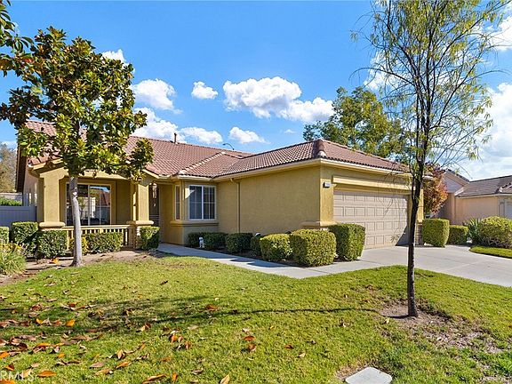 Peaceful evenings in the patio and all the amenities you could want! This charming single story home is located in The Oasis 55+ community featuring a clubhouse with more than 90 clubs and activities! The open concept home offers a spacious ensuite primary bedroom with a walk in closet and a guest bedroom and bathroom plus lots of storage space and tons of natural light. The large kitchen has a pantry and kitchen island plus a dining room area which opens to the spacious living room. The backyard is clean and perfect to enjoy your evenings looking at the hills. There are no neighbors behind and the block wall provides extra privacy will the iron fencing allows more space for your plants and greenery. There is a dog run or side patio with artificial turf and an oversized garage with built in cabinets and a water softener system. Your perfect forever home is here!