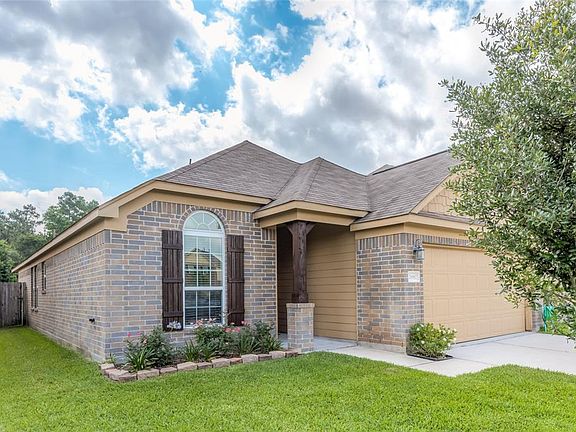 Beautiful well maintained all brick home in move-in ready condition. Located in Forest Village neighborhood. This single story rancher has no back neighbors and has easy back yard gate access to an expansive open green space. You'll enjoy park-like views of lush trees without the worry of maintaining them. Open concept kitchen, dining, and living space. Private backyard w/ covered patio. Kitchen features granite countertops. Large Master Bath features a garden tub, separate walk-in glass door shower and double sinks. Flexible room could be office, game room, or fourth bedroom. Beautiful and easy to maintain tile floor throughout halls and main living area. Freshly painted interior in a trend-conscious neutral color palette (Oct 2017). Recent carpet in all bedrooms (Oct 2017). Upgraded interior doors. Great location with easy access to freeways, shopping, parks, and restaurants. Conroe Independent School District.